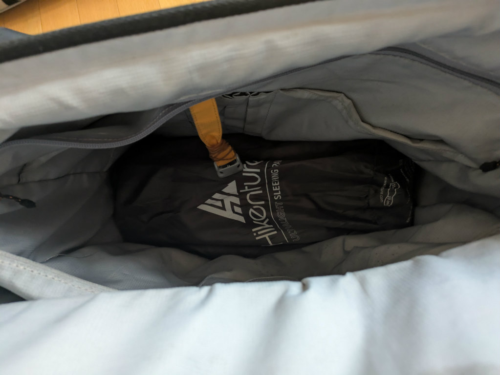 本当は寝袋は濡れないホムセン箱の中に入れたいところですが、今回はもうここしか入る場所ないのです。